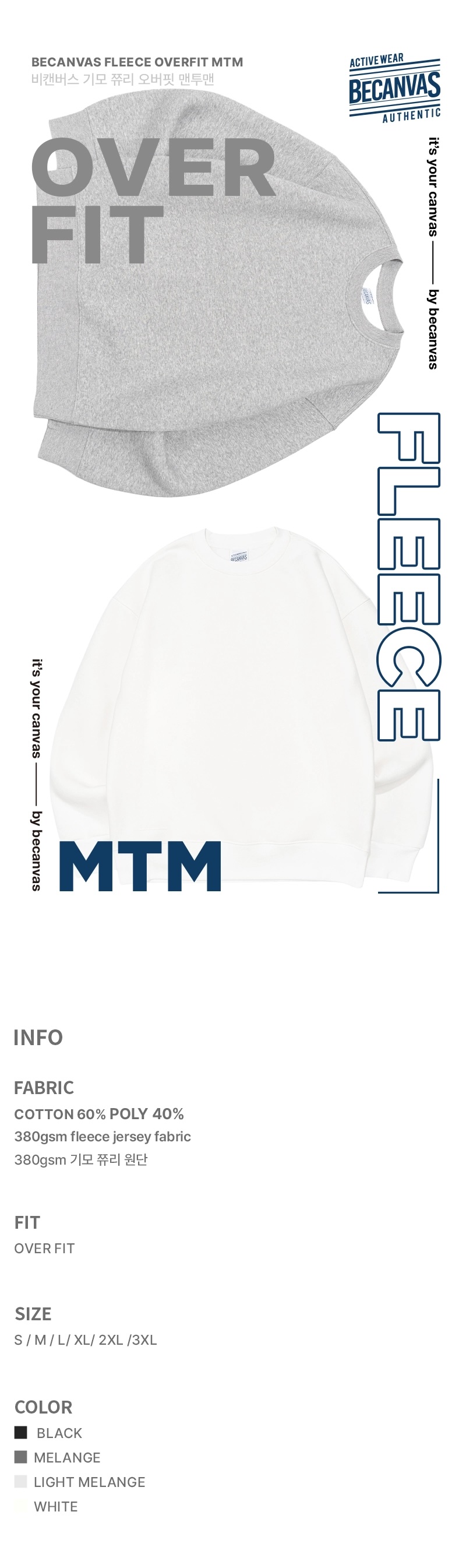 비캔버스 쭈리기모 오버핏 맨투맨