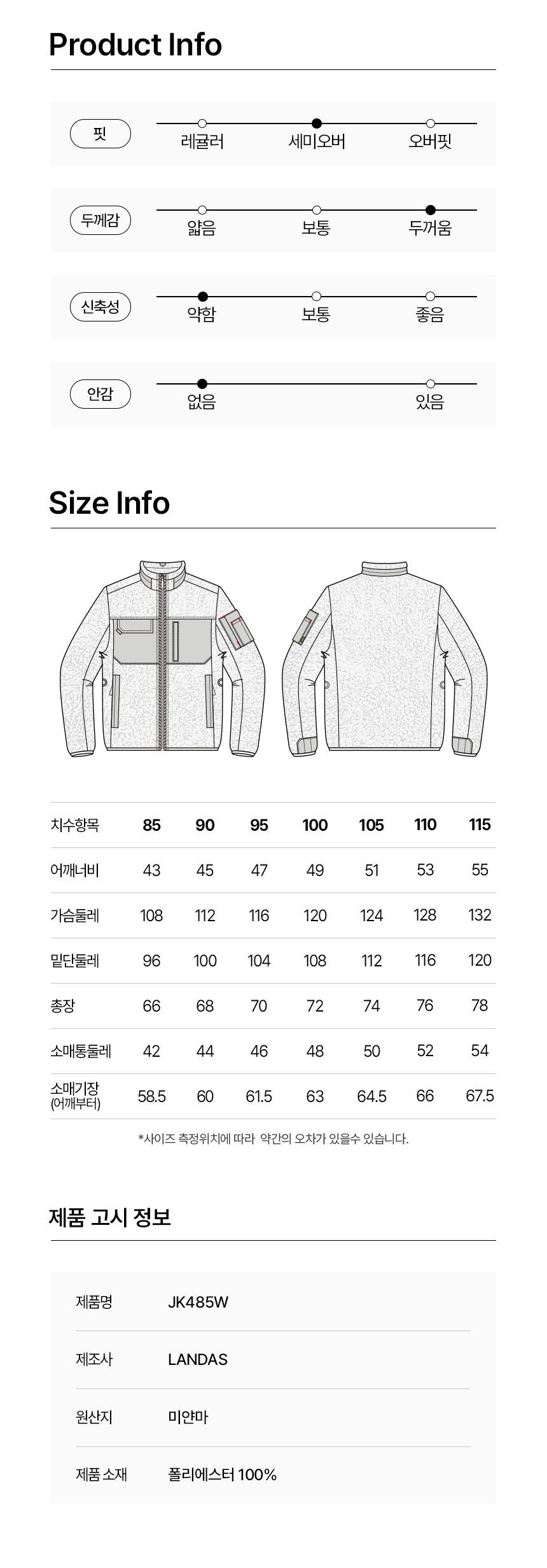 JK-485W 양털 플리스 4포켓