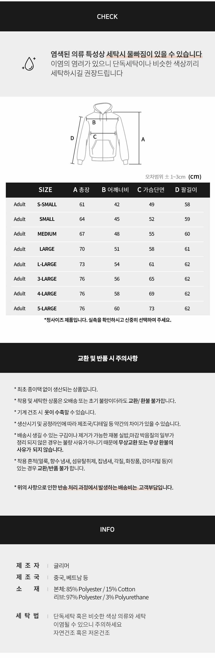 - 고객 변심으로 인한 교환/반품은 상품 수령 후 14일 이내 가능합니다.